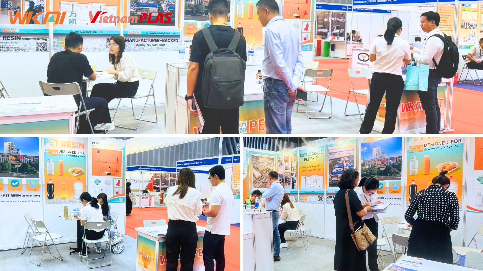На выставке Vietnam Plas 2025 компания Wankai представила широкий ассортимент ПЭТ-смол с различными диапазонами характеристической вязкости (ХВ) для различных сфер применения. В их число входят ПЭТ WK-801 / WK-801L для бутылок с водой, ПЭТ WK-811 для бутылок горячего розлива, ПЭТ WK-821 для бутылок с маслом, ПЭТ WK-881 / WK-851 для бутылок для газированных напитков, а также специально разработанный WK-901 для больших емкостей, таких как 5-галлонные бутылки. Компания также представила светлую ПЭТ-крошку WK-631 для производства пленок BoPET и высококачественных волокон, а также свою линейку продукции ПЭТГ.